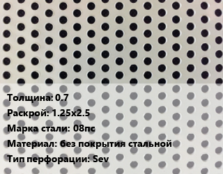 Лист перфорированный 0.7 1.25х2.5 Марка: 08пс без покрытия стальной Sev