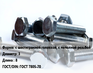 Болт с шестигранной головкой, с неполной резьбой 3х8 ГОСТ 7805-70