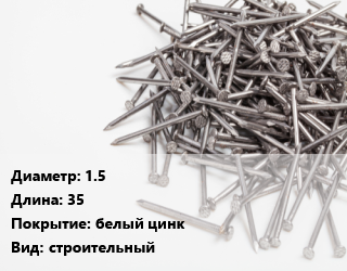 Гвоздь 1.5х35 белый цинк строительный, чертеж 7811-7075, кг цена от 87.06 Тг / кг, где купить, условия доставки в Павлодаре и Павлодарской области