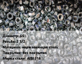 Контргайка 65 2 1/2 нержавеющая сталь без покрытия Сталь: AISI 316, шт цена от 1 143 Тг / шт, где купить, условия доставки в Павлодаре и Павлодарской области