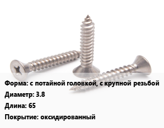 Саморез с потайной головкой, с крупной резьбой D=3.8 L=65 оксидированный
