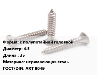 Саморез с полупотайной головкой D=4.5 L=35 нержавеющая сталь ГОСТ: ART 9049