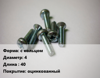 Винт с кольцом 4х40 оцинкованный, с метрической резьбой, цена за 100 шт,цена за 100 шт, кг цена от 239.61 Тг / кг, где купить, условия доставки в Павлодаре и Павлодарской области