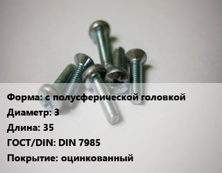 Винт с полусферической головкой 3х35 DIN 7985 оцинкованный