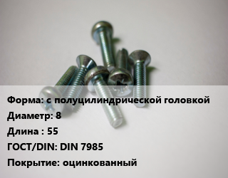 Винт с полуцилиндрической головкой 8х55 DIN 7985 оцинкованный