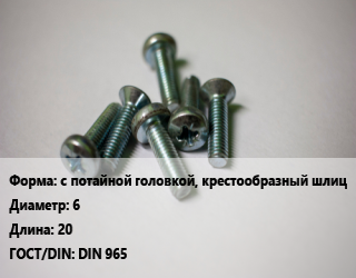 Винт с потайной головкой, крестообразный шлиц 6х20 DIN 965, цена за шт, кг цена По запросу где купить, условия доставки в Павлодаре и Павлодарской области