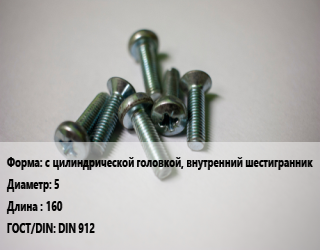 Винт с цилиндрической головкой, внутренний шестигранник 5х160 DIN 912