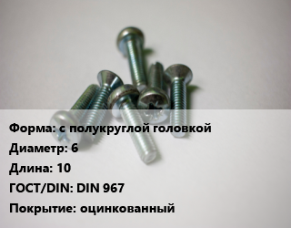 Винт с полукруглой головкой 6х10 DIN 967 оцинкованный
