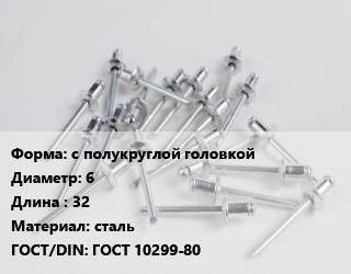 Заклепка с полукруглой головкой 6х32 сталь ГОСТ: ГОСТ 10299-80