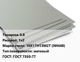 Лист нержавеющий 0.8 1х2 Сталь: 10Х17Н13М2Т (ЭИ448) Тип:матовый ГОСТ 7350-77