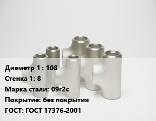 Тройник стальной 108х8 Сталь: 09г2с без покрытия ГОСТ: ГОСТ 17376-2001